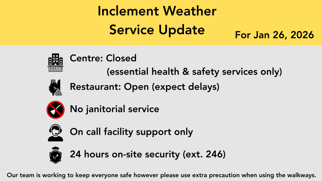 Our services will be closed Monday, January 26, except for essential services for health and wellbeing.